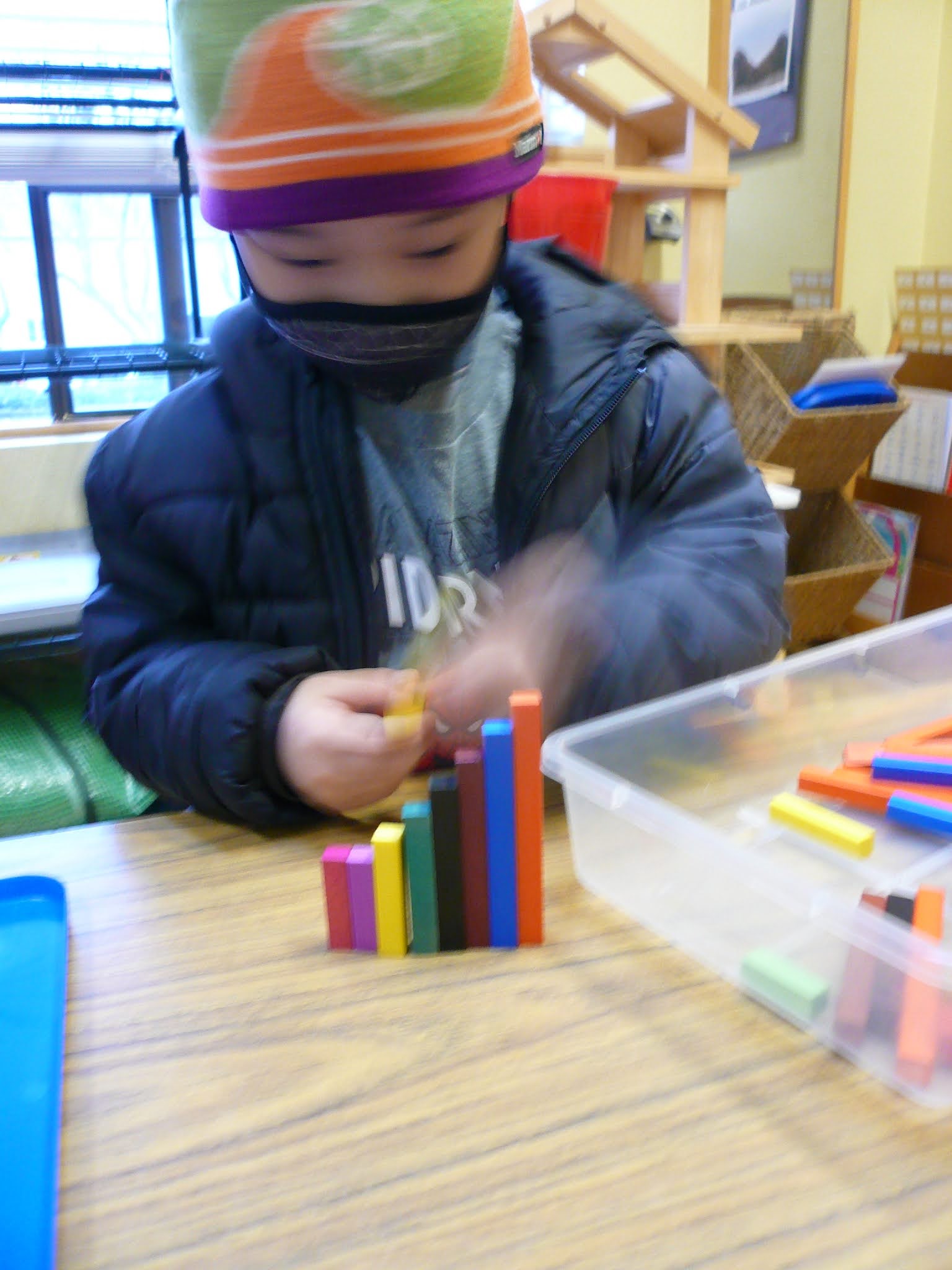 After months of work with Cuisenaire rods and base ten blocks, we decided to compare the two activities. Through playing and building the children started to make big connections.